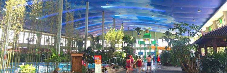 室外溫泉池50個,溶洞溫泉池4個,VIP湯屋5座,室外大型戲水區(qū)配有人工浪池,、國際標準游泳池、大型浪擺水滑梯、水上單車、水上迷宮等。