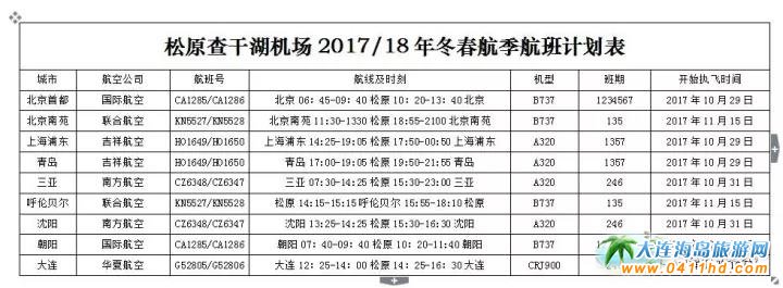 華夏航空開通大連到松原查干湖航線 2017年11月16日大連到松原查