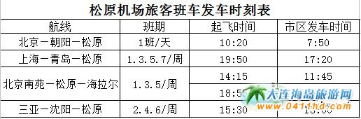 1.機場巴士從市區(qū)發(fā)車時間均以當(dāng)日航班從松原機場起飛提前2.5小時發(fā)車計算;