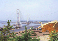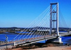 長(zhǎng)興島大橋_中國(guó)第一座斜張拉力跨海大橋 長(zhǎng)興島斜張拉力跨海大橋 全長(zhǎng)355米,寬10米,單孔最大跨度176米,兩個(gè)重力式基礎(chǔ)橋墩屹...