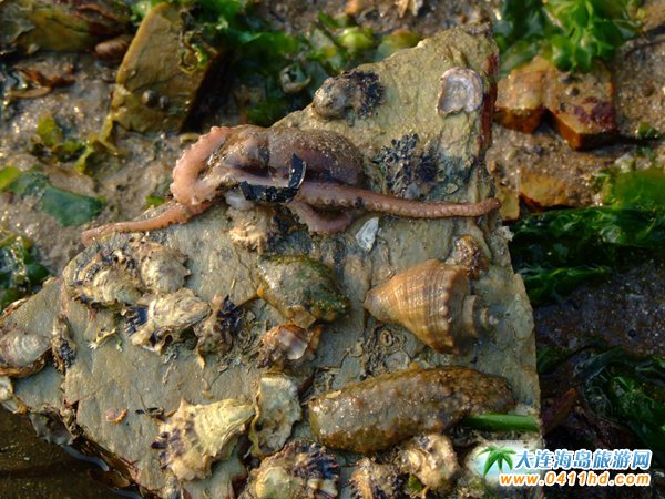 水灣中一塊比較大的石塊,經(jīng)驗(yàn)判斷往往這種地方能有大家伙,于是輕輕的把手伸進(jìn)石頭下面,由于石頭上的蠣殼比較多,還要小心不能劃到手,剛剛把整個(gè)手掌探到洞中,立刻就摸到到一團(tuán)軟軟的東西,原來是一條蚆蛸!