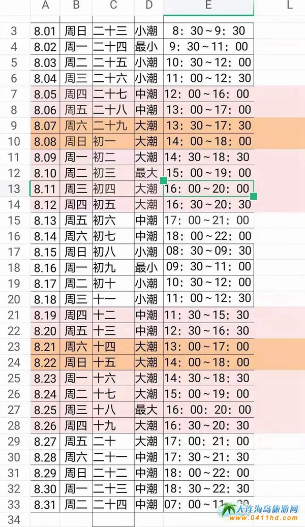 大連帶孩子趕海哪里好,趕海時間表,潮汐表