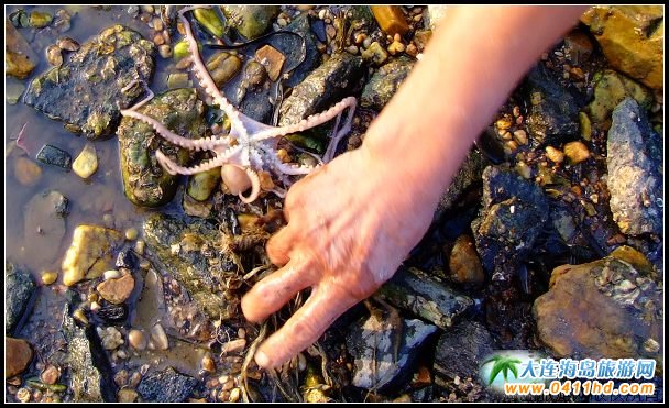 看到上面這幾張圖片了嗎,這是在現(xiàn)場(chǎng)親眼所見(jiàn),一位當(dāng)?shù)厝嗽诎峭樧拥臅r(shí)候,很隨意的捉住了這只八爪魚(yú)。