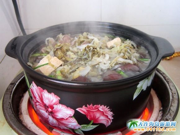 東北人最愛來上幾口正宗的殺豬菜,超大的鐵鍋自家養(yǎng)的豬肉,自家制的酸菜,自家灌的血腸,咕嘟咕嘟,即使夏天也要來上那么一份。