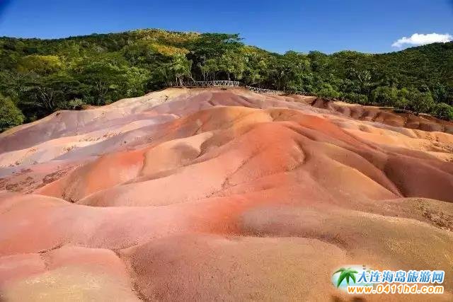 毛里求斯有不少令人驚嘆的自然景觀,七色土應(yīng)該是最夢幻的一處。站在高處可以看到起伏的坡地向四面八方延展,呈現(xiàn)出清晰的紅、褐、紫、綠等七種顏色。據(jù)說是因為火山噴發(fā)后火山灰堆積而成,即使把不同顏色的泥土翻開后混合在一起,只要經(jīng)過一場大雨,它們又會恢復(fù)原狀。
