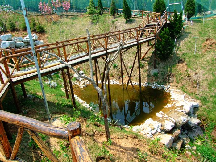 這里采用了原木的長廊設計,配以假山石路,在大片的櫻桃樹中蜿蜒而過,試想在櫻桃成熟的季節(jié),不僅有滿園的蝴蝶翩然起舞,更有綴紅的櫻桃舉手可摘。