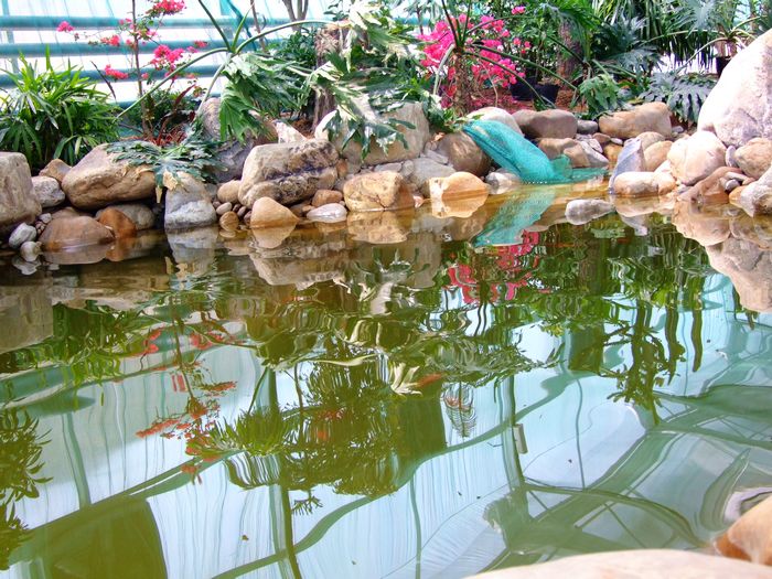 走進(jìn)旅順蝴蝶園中的蝶戀花區(qū),盡管是在室內(nèi),但宛若走進(jìn)了一處南國(guó)風(fēng)情的鄉(xiāng)間小隅,潺潺的流水,彎彎的小橋,石頭鋪就的小路,還有翠綠的葉,嬌艷的花,舞動(dòng)的蝶,更有在水中游動(dòng)的紅鯉,這就是大師筆下的一副彩色山水圖。