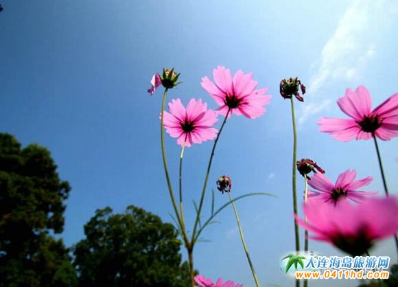 只有粉色的波斯菊還在頑強的綻放著