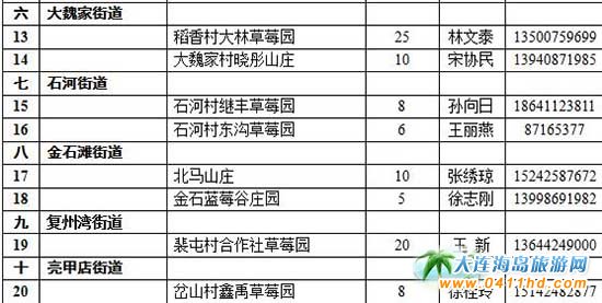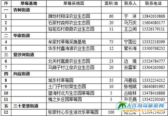 ——十大草莓基地精品薈萃。新區(qū)草莓種植面積2000畝,平均畝產超過2000公斤,品種多達30余個,包括京藏香、京桃香、京留香、粉紅公主等國產品種和幸香、紅顏、紅粉佳人、櫪乙女等日系品種,新區(qū)也因此被贊譽為“中國草莓之鄉(xiāng)”。為打造大連市民近郊休閑旅游新熱點,新區(qū)推出十大草莓基地20個采摘園供市民應時采摘。十大草莓基地分布在杏樹、華家、登沙河、向應、三十里堡、大魏家、石河、金石灘、復州灣及亮甲店街道。十大草莓基地著力引進和培育新品種,以優(yōu)質農家肥、豆餅肥、海洋肥等為底肥,以液肥滴灌方式追肥,病蟲害防治實施生物防治和物理防治相結合,蜜蜂傳粉、自然成熟,不使用任何上色劑、增甜劑、膨大劑、催熟劑,確保草莓的品質與安全。十大草莓基地還設有質量監(jiān)測站,在草莓生產中實施全程質量監(jiān)控。