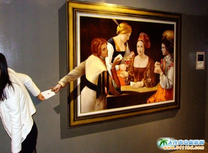 大連金石灘奇幻藝術(shù)體驗(yàn)館以老蠟像館為原址,建筑面積2600多平方米,由15位世界知名的韓國(guó)三維立體畫(huà)家歷經(jīng)一年的策劃和設(shè)計(jì),用時(shí)半年手繪所完成的150余幅奇幻藝術(shù)油畫(huà)作品,構(gòu)成名畫(huà)館、生活錯(cuò)覺(jué)館、希臘羅馬埃及館、恐龍動(dòng)物海洋館、中國(guó)館、世界館、韓國(guó)館等七大奇幻場(chǎng)館,是東北地區(qū)最具代表性的旅游創(chuàng)意文化體驗(yàn)館。