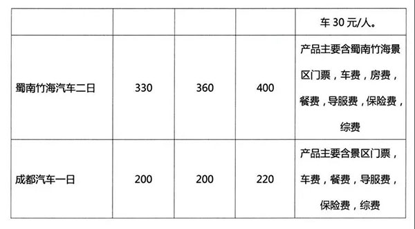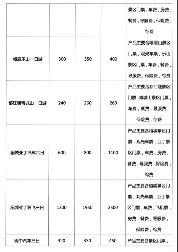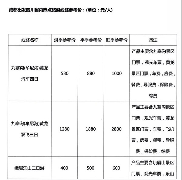 ——2019年成都旅游局公布四川42條旅游線路參考價格