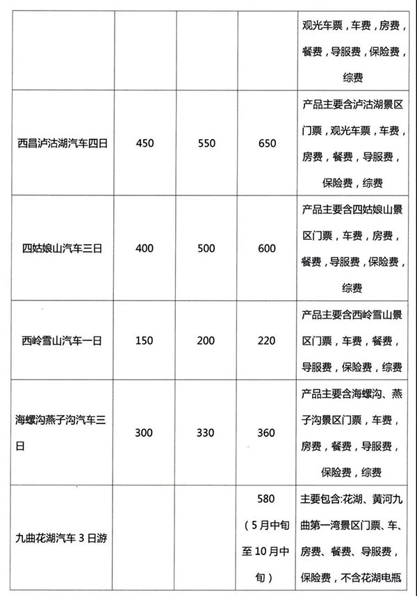 2019年成都旅游局公布四川42條旅游線路參考價格
