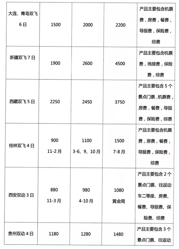 成都出發(fā)省外熱點旅游線路參考價:(單位:元/人)