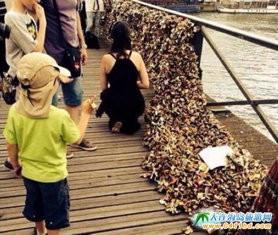 由于掛鎖的人太多,而橋上空間有限,為了能把自己的鎖放上去,很多人開始變得異常瘋狂,他們往往要冒著危險爬到更高的地方,或者探身到水面上才能完成“任務”。這座橋上風景極佳,除了情侶外,很多藝術家也來此寫生。除巴黎外,很多西歐國家都有類似的“愛情鐵橋".