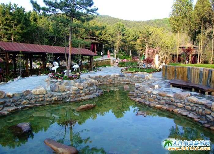 旅順香格里湯泉宮室外溫泉景觀山石和紅綠相間的樹木,人工雕琢與自然風(fēng)物渾然一體,山澗溪水與溫泉泡池錯落有序;異形室外浴,木質(zhì)茶樓與溫泉會館,水療中心交相輝映。