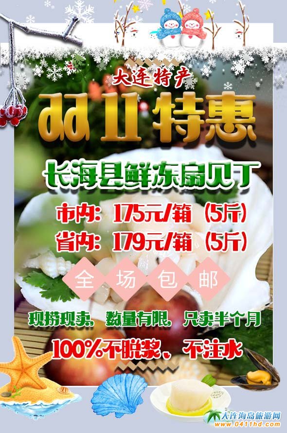 雙“11”大連長?h島里鮮扇貝丁限時(shí)特賣