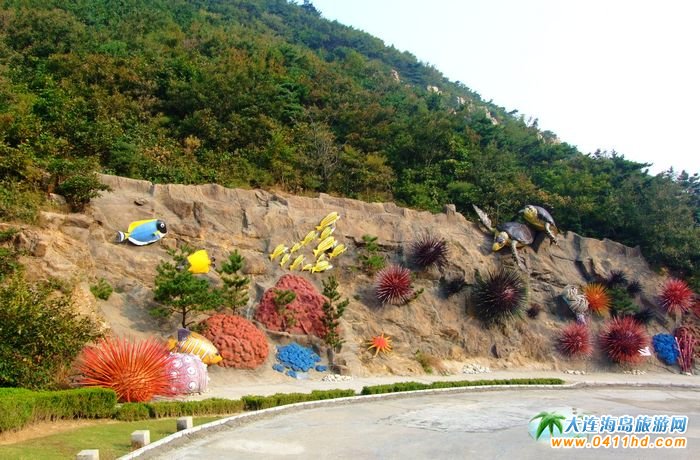 這兩側(cè)的雕塑完全以海洋生物為主題,突出海洋文化色彩,各種雕塑造型逼真栩栩如生色彩艷麗,游客走在十八盤(pán)猶如在海洋生物館中穿行。