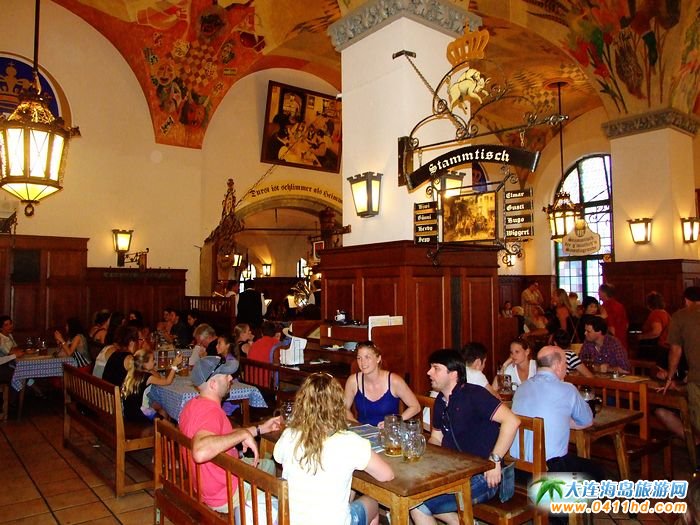 德國慕尼黑HOFBRAUHAUS啤酒屋有著濃郁歐洲風(fēng)格特色的德國建筑,啤酒屋始建于1589年是當(dāng)時(shí)的皇家啤酒廠。整幢建筑最多可容納5000人;三樓是大宴會(huì)廳,可容納1000人一起歡飲。這里的啤酒屋供應(yīng)其我們很熟悉的HB啤酒。每天都有近萬升的啤酒從這兒運(yùn)往大大小小的酒鋪、酒館、宴會(huì)廳以及啤酒園。