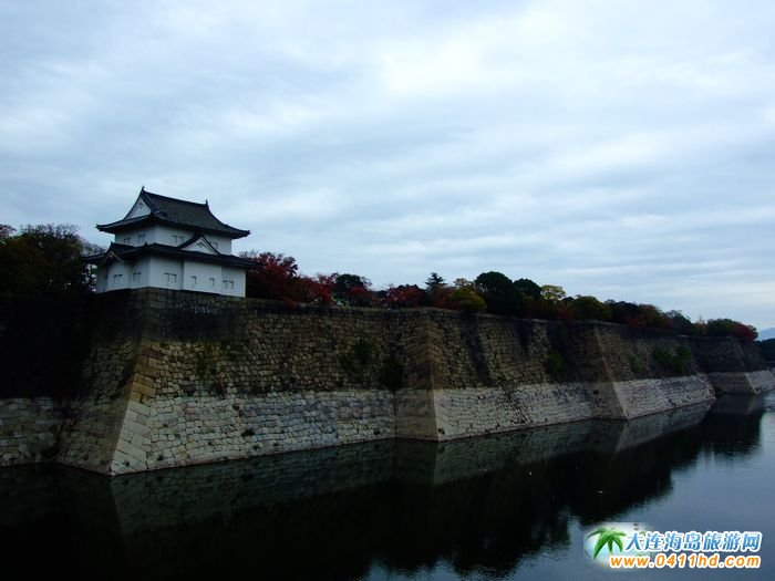 雄偉的護(hù)城河,大量巨石堆砌的石垣是德川大坂城固若金湯的象征。護(hù)城河寬達(dá)70-90米,其兩側(cè)聳立的石垣,高達(dá)20米且非常陡峭的城墻是用從日本各地運(yùn)來(lái)的巨石修砌而成的。用花崗巖砌成的石垣總長(zhǎng)達(dá)12公里,所用的石頭達(dá)到50萬(wàn)-100萬(wàn)塊。那高而陡的城墻和寬闊的護(hù)城河構(gòu)成的壯觀景象是其他任何一座日本古城都無(wú)法比擬。