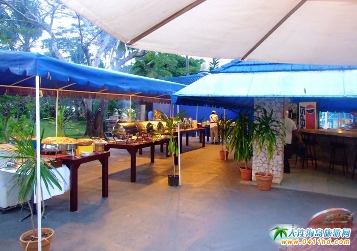 美麗的夕陽(yáng)下,伴著陣陣的清涼海風(fēng),椰樹(shù)的影子在暮色中剪切出美麗的畫(huà)面,濃濃的牛排香味飄溢肆虐的勾引著你的嗅覺(jué)。還有那當(dāng)?shù)氐牟槟迕褡逦璧,讓你陶醉在這異域的暮色中。