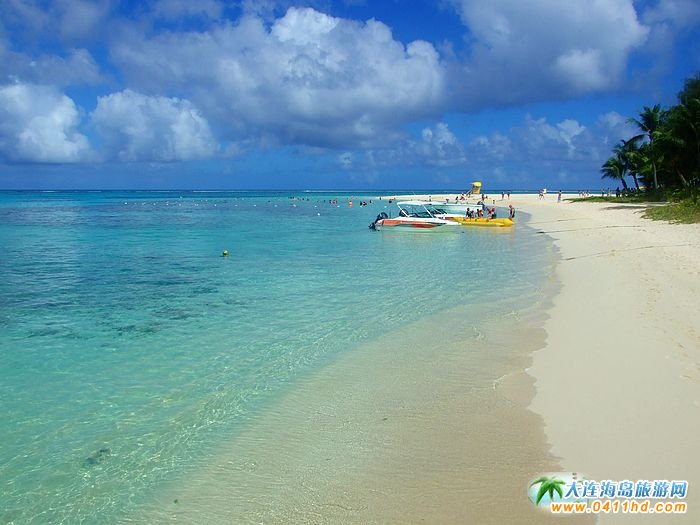 塞班軍艦島圖片-藍(lán)天白云水清沙幼