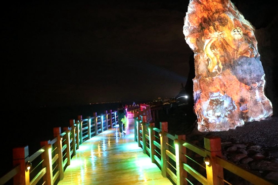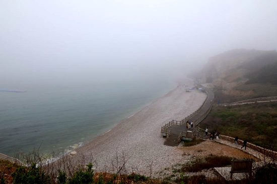 《一海》——林海位于長島城區(qū)的最南端,因廣闊的大海、茂密的森林而得名,景區(qū)依山就勢,憑海而作,被稱為“濃縮了的仙境,擴(kuò)大了的盆景”,又因負(fù)氧離子含量高被稱為“天然氧吧”。這里可以看到黃渤海分界線,涇渭分明,形成一幅”太極”奇觀。