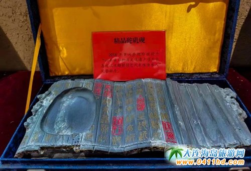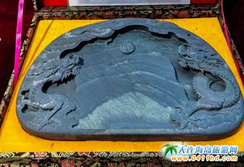 砣磯島開采的石料石色青黑,質(zhì)地堅硬,溫潤細(xì)膩,金星閃爍,雪浪翻涌,名曰“金星雪浪石”。經(jīng)能工巧匠加工細(xì)作,成為硯臺,歷來受到文人墨客的賞識,是歷代地方官使敬獻(xiàn)皇帝的貢品。