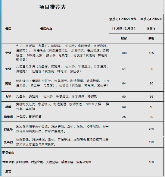 山東長島景點門票價格,