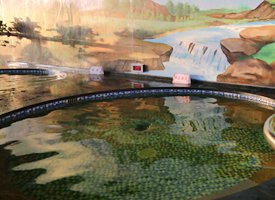 大連水云澗溫泉水上樂園坐落于大連市金州區(qū)三十里堡街道三道灣社區(qū)大東山下,是集水果采摘,水上樂園,溫泉度假,山水觀光,酒店餐飲為一體的大型休閑旅游度假村?偯娣e占地2000余畝,擁有50000尾以上的大型觀賞魚塘。有大正、昭和、寫鯉、皮鯉等不同種類錦鯉20000尾以上;擁有靜鯉、花鰱、白鰱、黑鯽、草梭等各類常見淡水鯉魚30000尾以上。游客們可觀賞到大量魚兒競相爭食的壯觀景象。
