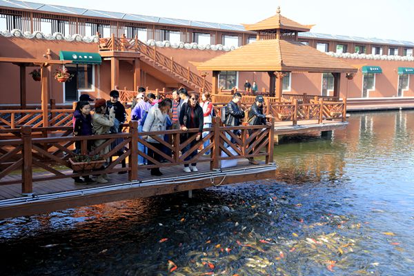 溫泉水上樂(lè)園占地面積15000㎡,可容納3000名游客同時(shí)游樂(lè)。采用庭院式裝修風(fēng)格,給人以蓬勃、延展、大氣的視覺(jué)感受,溫情愜意、舒適典雅。園內(nèi)設(shè)有多功能溫泉泡池、國(guó)際標(biāo)準(zhǔn)泳池、大型戲水滑梯、火龍?jiān)、淘氣堡、蹦床、特色餐廳等多種休閑娛樂(lè)項(xiàng)目,一票暢玩,老少皆宜,性價(jià)比超高。園區(qū)外建有大型觀賞魚塘,擁有各類觀賞鯉魚50000余尾,一把魚食撒下,即可欣賞到萬(wàn)尾鯉魚跳躍爭(zhēng)食的壯觀景象。