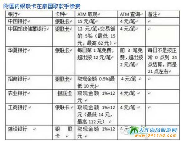 二、泰國:只要用銀聯(lián)卡在泰國ATM使用,泰國銀行都要收取ATM額外手續(xù)費50銖;