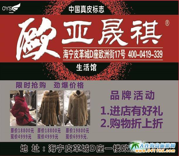 凡在海寧皮革城購物的顧客,皮衣單筆購物滿1000元,即可換取一張抽獎(jiǎng)券,皮草單筆購物滿8000元,即可換取兩張抽獎(jiǎng)券;