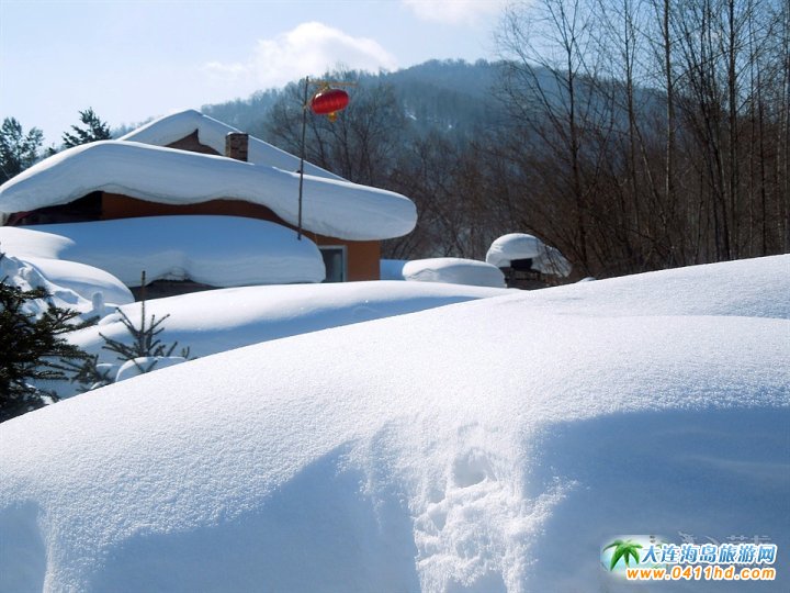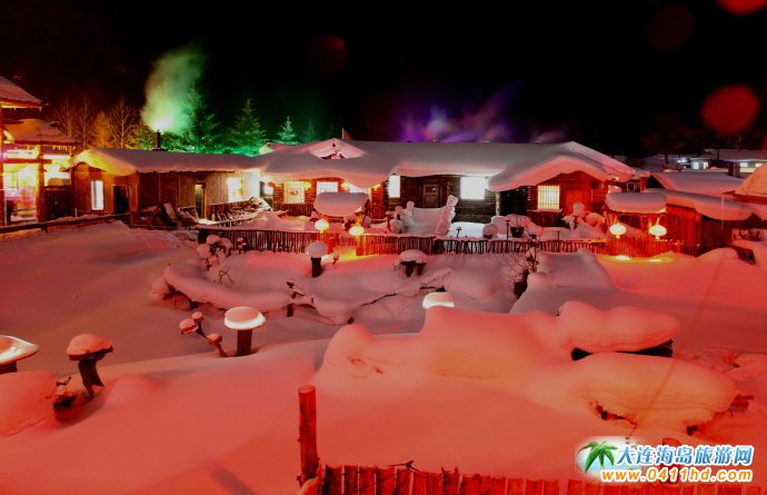 中國雪鄉(xiāng)被稱為龍江三巨臂的老禿頂子、大禿頂子和平頂山,海拔均在1600米以上,其中老禿頂子山雄居群山之冠,海拔1686.9米,山頂積雪常年不化,遍生高山岳樺和偃松,是黑龍江第一高峰。雪鄉(xiāng)的夜晚來得特別早,傍晚5點(diǎn)過后,暮色已降臨,雪鄉(xiāng)那一排排蘑菇般的小房房頂升起一縷縷炊煙,家家戶戶門前的紅燈籠映紅了屋檐的白雪,山村這時變得格外寧靜,屋外已是零下30攝氏度的嚴(yán)寒,屋里卻透出陣陣暖意,家家戶戶的小窗已被晚飯的灶火映紅。
