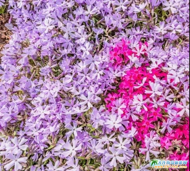 芝櫻花與櫻花應(yīng)該都是凌枝招展,有很多相似的地方,然而并不是,芝櫻花并沒有綻放在枝頭,而是覆蓋著地表,遠(yuǎn)遠(yuǎn)望去,紫的、白的、粉紅色的花海一片絢爛。
