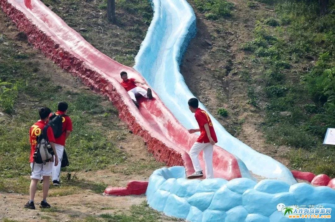 兩條不同顏色的滑道同時(shí)出發(fā),到達(dá)滑梯的中間分開滑行,底部又相遇在一起,約上小伙伴來比試一下吧!