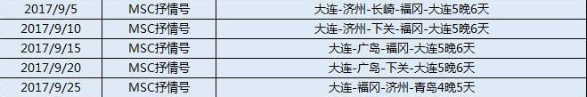2017年在大連港出發(fā)的地中海郵輪抒情號(hào)出發(fā)航次時(shí)間,有意向出發(fā)的朋友們趕緊記一下,好好安排好家人的出行時(shí)間哦~