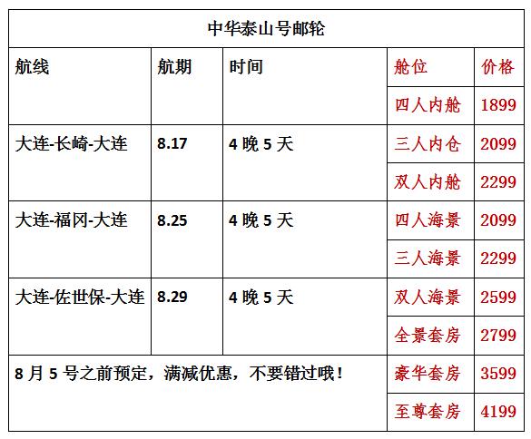 8月大連郵輪推薦,經(jīng)典超實惠郵輪——中華泰山號郵輪