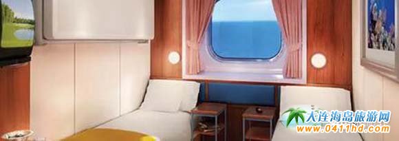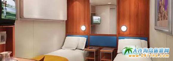 內(nèi)側(cè)房舒適實用,這里有您海上航行所需要的一切,配備貼心而又具有時尚感的裝飾,比如電視、休息區(qū)等。
