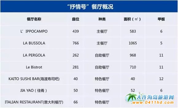 2、根據(jù)艙房樓層的不同會(huì)安排不同的用餐時(shí)間,所以一定要趕在開(kāi)餐的時(shí)候去,不然容易錯(cuò)過(guò),就只能去11層自助餐廳了;
