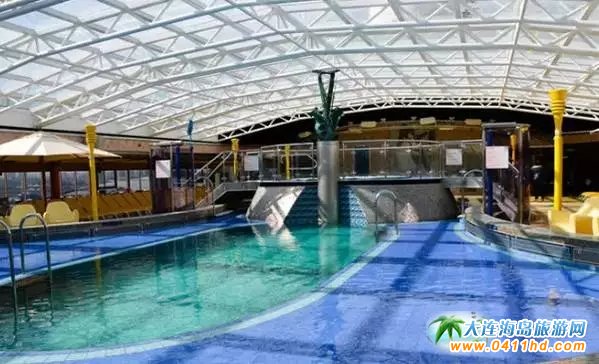 位于甲板層中段位置的露天游泳池,一共4個,當郵輪在海上游行,而你在郵輪的游泳池中,大概也會是一番別樣的享受吧。