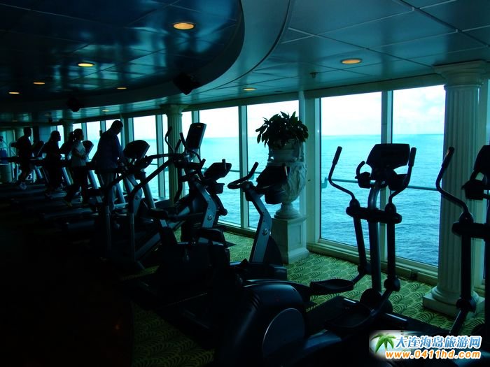 在海洋神話號(hào)郵輪上,為游客配備了免費(fèi)的健身房,各種健身器材應(yīng)有盡有,一排跑步機(jī)以及登山機(jī)就擺放在臨窗的位置,當(dāng)您在機(jī)器上運(yùn)動(dòng)的時(shí)候,抬頭即可觸望到外面碧藍(lán)的大海和天空,那種視覺(jué)上的享受的確是與過(guò)去接觸過(guò)的健身房所無(wú)法比擬的。