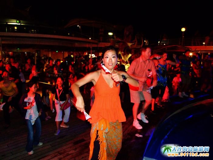 收起您的矜持,放下您的外殼,釋放您自己。。  有什么比甲板派對(duì)更酷的呢?在"海洋神話號(hào)"郵輪上會(huì)讓你時(shí)時(shí)的激情四射。甲板派對(duì)是由"海洋神話號(hào)"郵輪娛樂(lè)活動(dòng)部經(jīng)理JEFFREY先生及娛樂(lè)部員工主持,音樂(lè)來(lái)自DYNAMICDUO,活動(dòng)的時(shí)間是在晚上10:45至午夜,地點(diǎn)在9層露天泳池畔,記住,不要太興奮,不要太狂熱,這里沒(méi)有出租車。