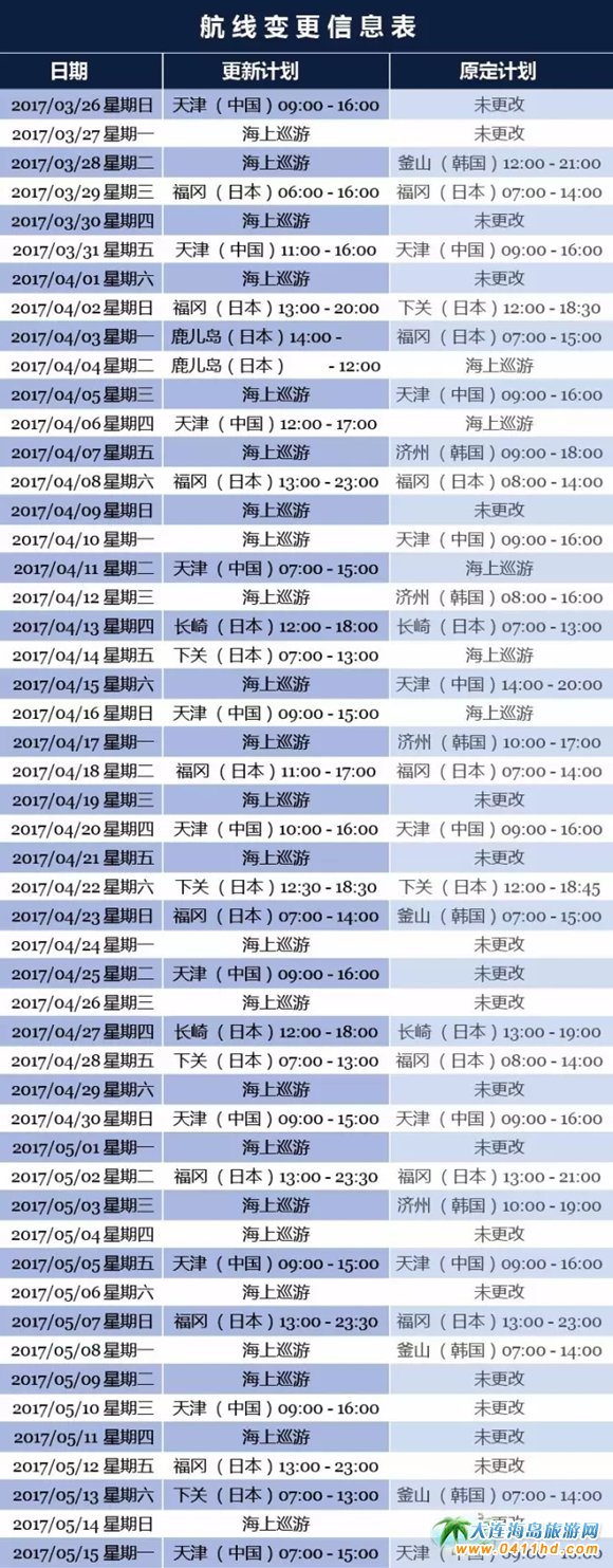 鑒于近期韓國局勢的發(fā)展,MSC地中海郵輪公司對旗下“抒情號”郵輪自2017年3月26日至5月15日期間的航次行程進(jìn)行了調(diào)整,取消韓國港口的?浚{(diào)整部分日本港口的靠泊時間。此外,MSC地中海郵輪將通過增加更多的船上娛樂休閑活動安排,提升整體體驗,為乘客提供更加舒適悠閑的歐式海上假期。